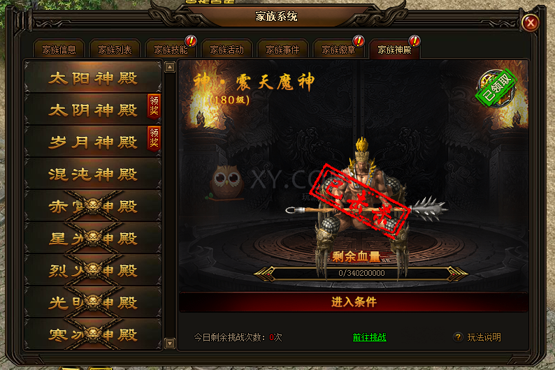 PS:每周日23:50:00-23:59:59无法进入家族神殿