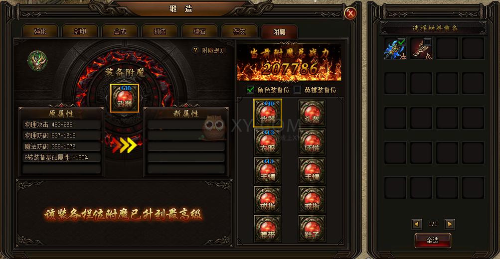 开服第60天,开启装备附魔系统。