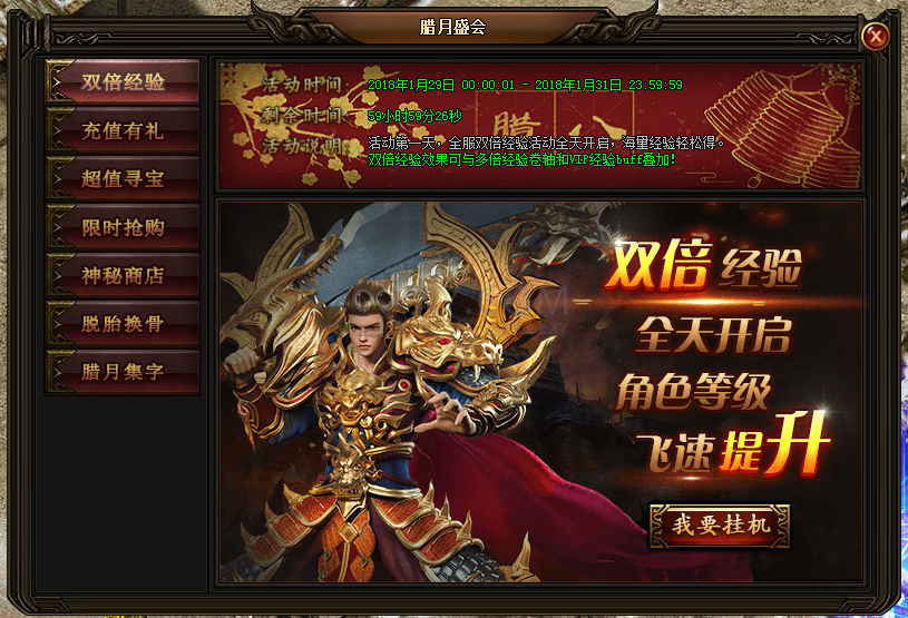 1. 活动期间,全服双倍经验全天开启,可与多倍经验卷轴和VIP经验BUFF完美叠加!