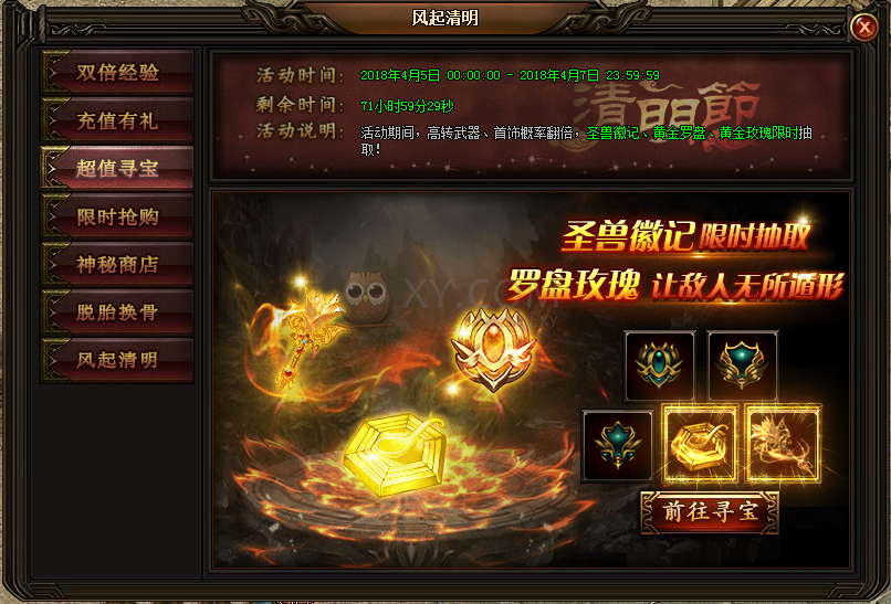 3.4月5日至4月7日,高转武器、首饰,圣兽徽记、黄金罗盘,黄金玫瑰限时抽取!