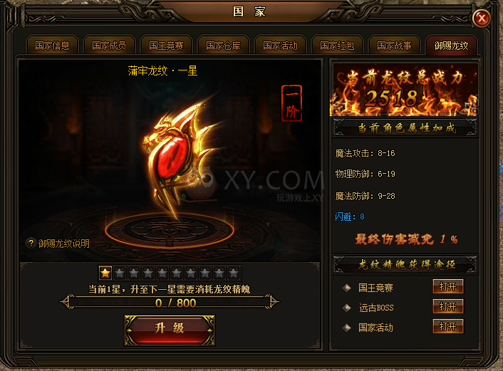 另一个大家比较在意的,就是国家仓库功能的更改和御赐龙纹的开启