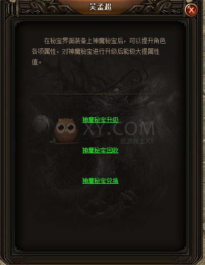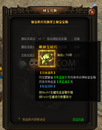 获得满意的秘宝才仅仅是一个开始。盟重省NPC吴孟超处可以对获取的秘宝进行升级,回收和兑换。