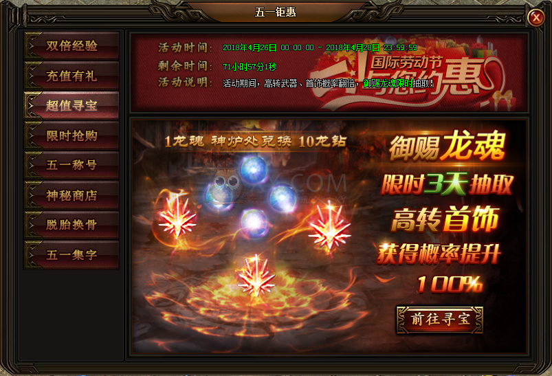 3.4月26日至4月28日,高转武器、首饰,御赐龙魂限时抽取!