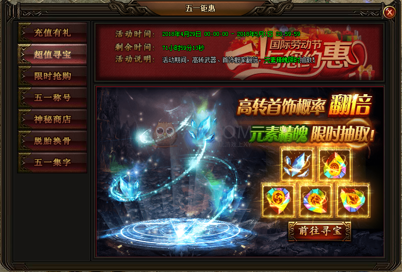 4.4月29日至5月1日,高转武器、首饰,元素精魄限时抽取!